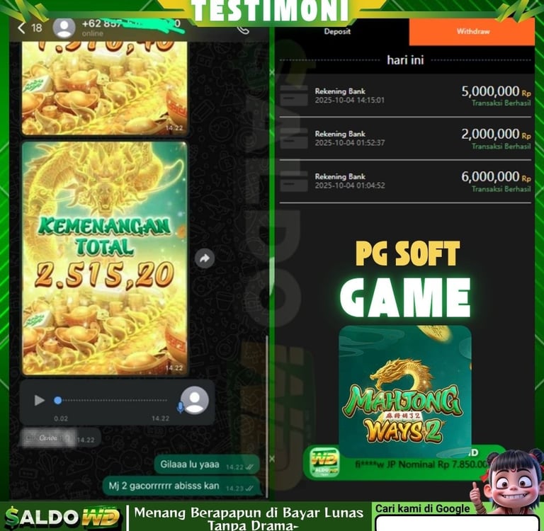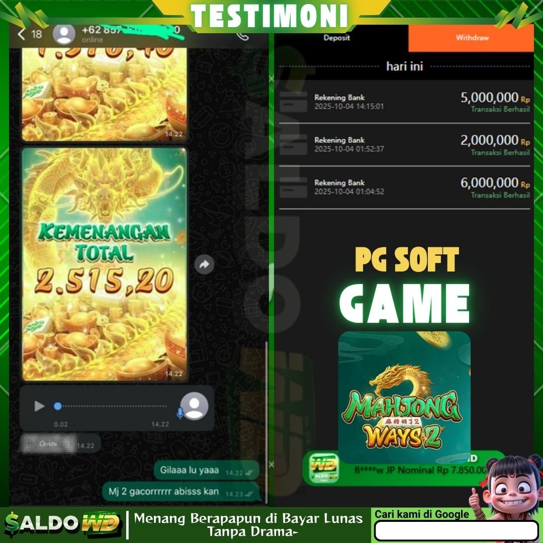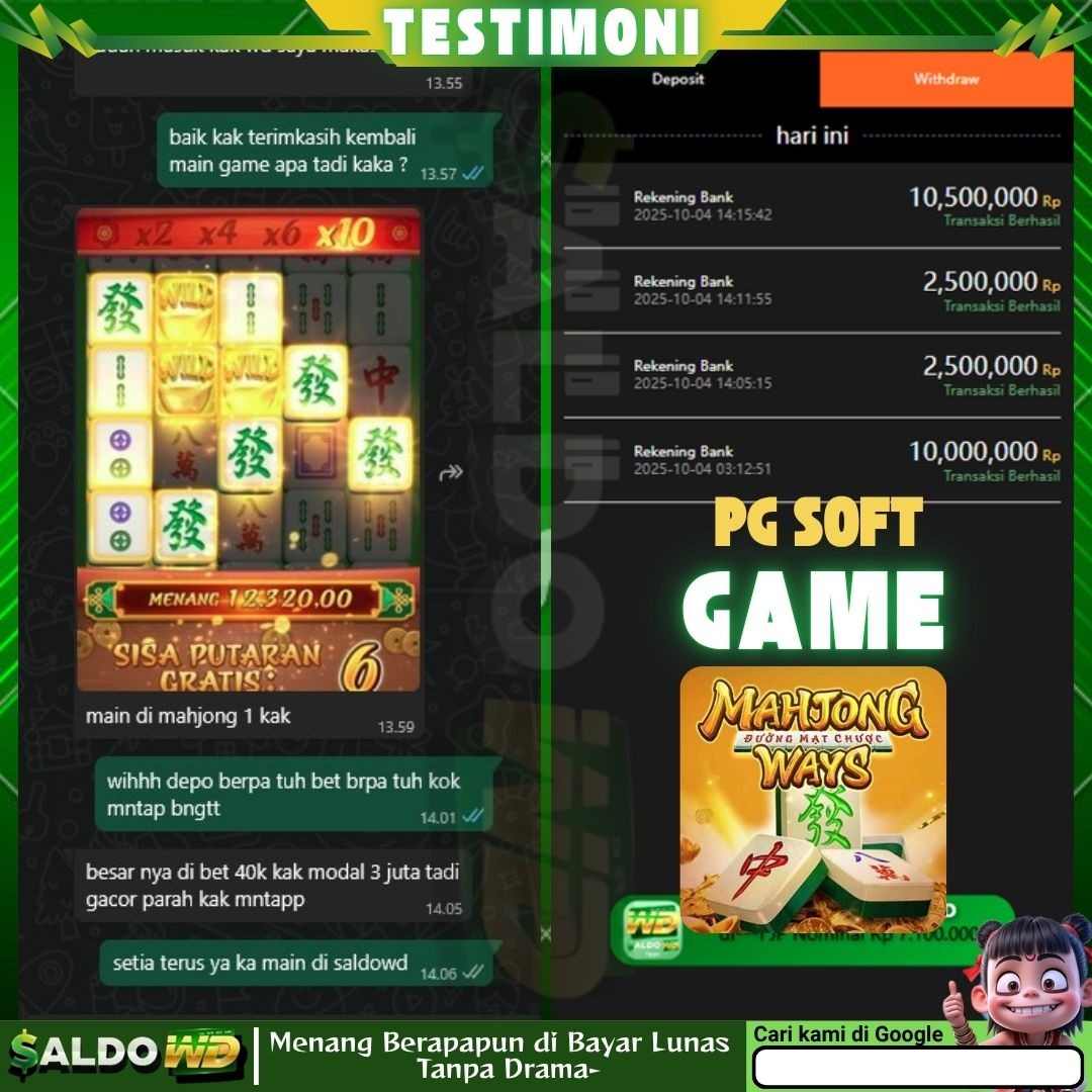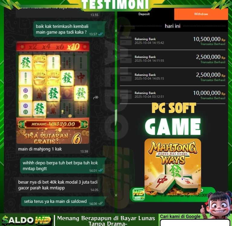 "Sudah lama main di sini dan belum pernah kecewa. Pilihan gamenya banyak dan seru-seru. Tapi yang paling penting, proses WD (withdraw) di SALDOWD selalu lancar dan cepat masuknya. Pelayanannya juga profesional dan ramah. Situs aman dan terpercaya, salut!"